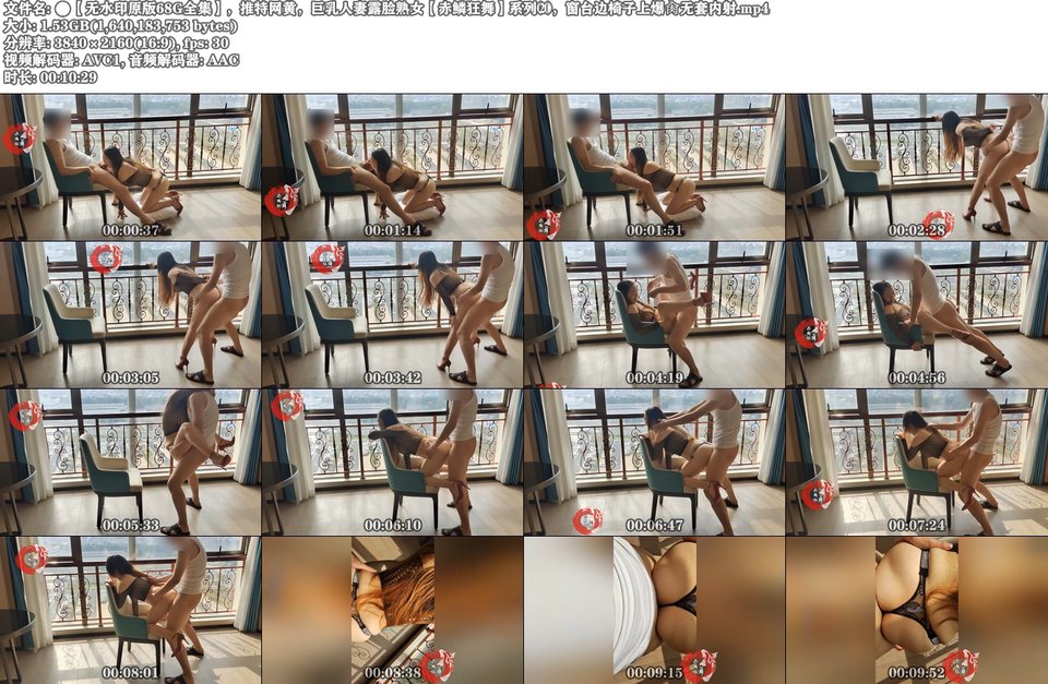 【影片名称】:☀【无水印原版68G全集】推特网黄,巨乳人妻露脸熟女【赤鳞狂舞】系列⒇,窗台边椅子上爆肏无套内射【影片格式】:MP4【影片大小】:1520MB【影片时间】:10:29【影片说明】:无码【影片截图】: